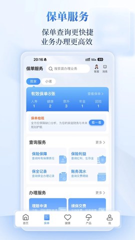 通过这款应用,保险服务与健康管理紧密相连,为你直播一场属于自己的保险与健康之旅,开启了属于你的全新篇章。